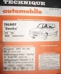 RTA422 TALBOT SAMBA LS/GLS/CAB ET EVOLUTION PEUGEOT 305
