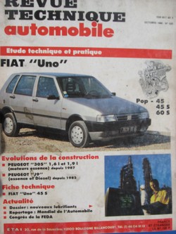 REVUE TECHNIQUE FIAT UNO POP 45/45S/60S EDITE en 1990